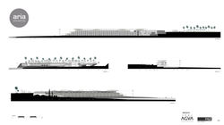 En “Aria” la arquitectura se expresa como paisaje mediante el juego topográfico de pliegues y analogías de cerros, se expresa la idea de un nuevo paisaje a través de una arquitectura topográfica.